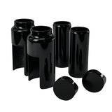 Complete 6-piece fork cover kit in black with the fork caps in pure black.